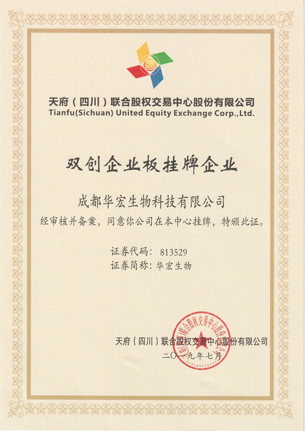 雙創(chuàng)企業(yè)版掛牌證書(shū)