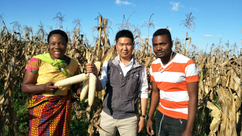 2018年在非洲贊比亞使用土壤改良劑的玉米畝產(chǎn)達(dá)到1200斤,對(duì)照產(chǎn)量只有600斤