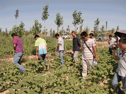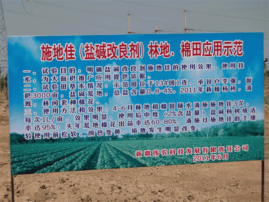 2011年“施地佳”鹽堿土壤改良劑在新疆兵團農(nóng)八師134團防風林帶間種棉花試驗示范現(xiàn)場會(組圖)