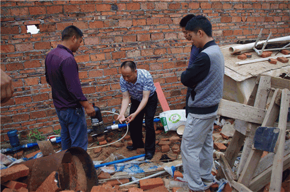 上圖為李總向?qū)I(yè)戶建議將肥水池重新改造
