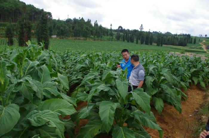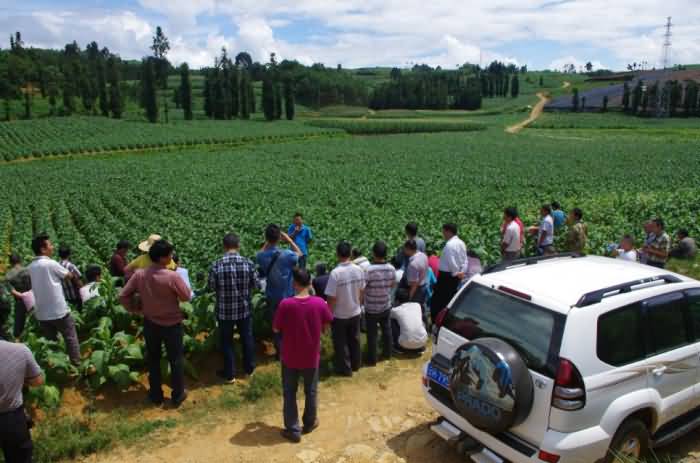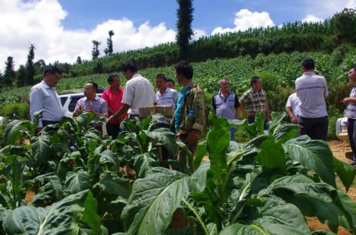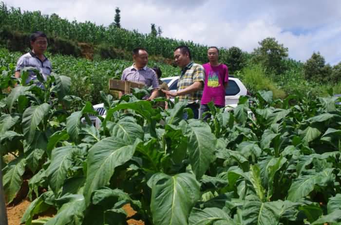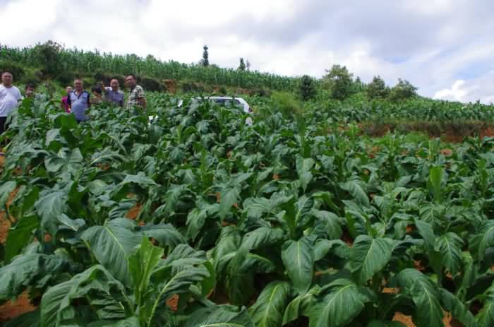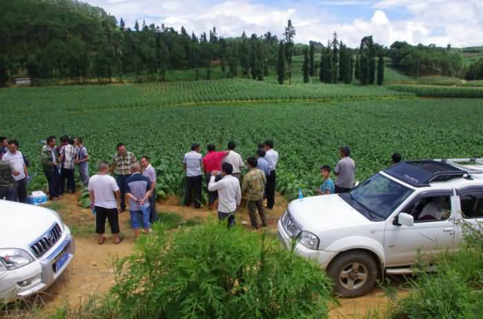 為了解自己的產(chǎn)品對酸化土壤的改良效果和產(chǎn)品質(zhì)量因素,成都華宏生態(tài)農(nóng)業(yè)科技有限公司總經(jīng)理李智強,先于2014年4月親臨云南省麻栗坡縣(中越邊境縣)的試驗示范地,在當(dāng)?shù)赝练屎蜔熆撇块T的主持下,召開使用示范現(xiàn)場會,在他們的引領(lǐng)下,實地指導(dǎo)用戶使用“施地佳”土壤調(diào)理劑。因效果明顯,在當(dāng)?shù)責(zé)熆撇块T的建議和邀請下,李總又于7月19日,驅(qū)車趕到云南麻栗坡縣參加當(dāng)?shù)責(zé)熆撇块T組織的效果現(xiàn)場會,并與煙農(nóng)們進行了廣泛的交流。李總看見自己開發(fā)的產(chǎn)品讓煙苗長得枝粗葉大,再大的勞苦也被拋在了腦后。