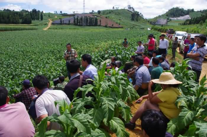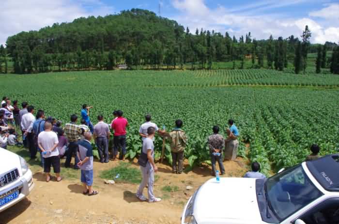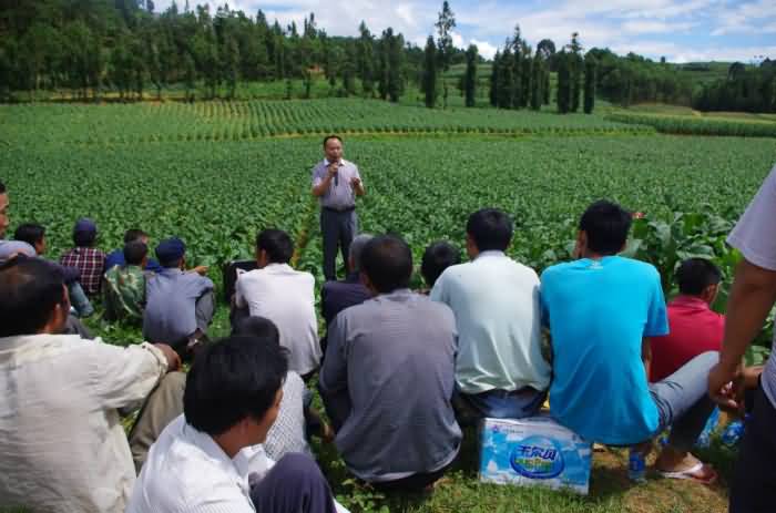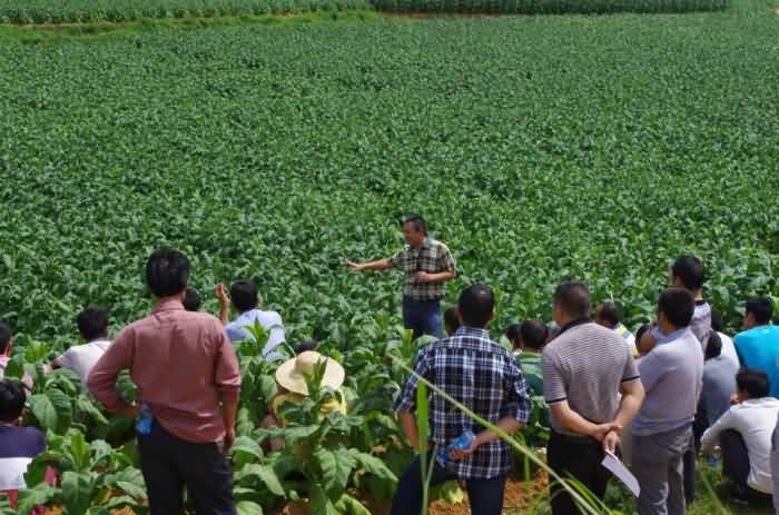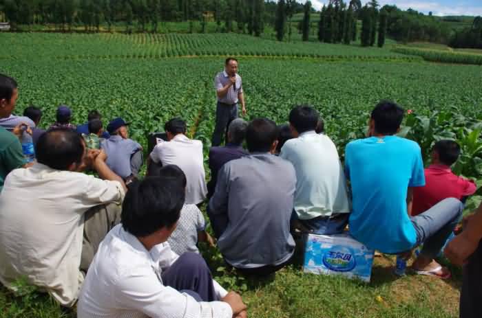 煙科院專家張曉海教授在給煙農(nóng)介紹煙科院連續(xù)三年使用我公司產(chǎn)品的實際效果
