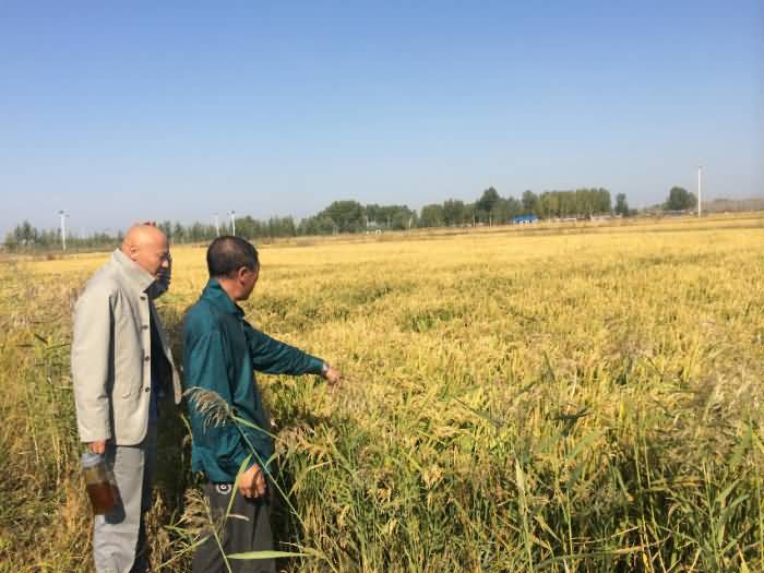 圖1:吉林省鎮(zhèn)賚縣農(nóng)業(yè)技術(shù)推廣站王金才站長親自做的實驗示范地,金黃色的稻穗讓人不得不相信