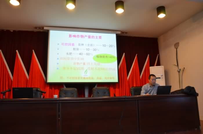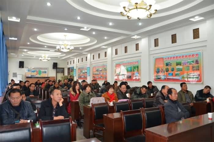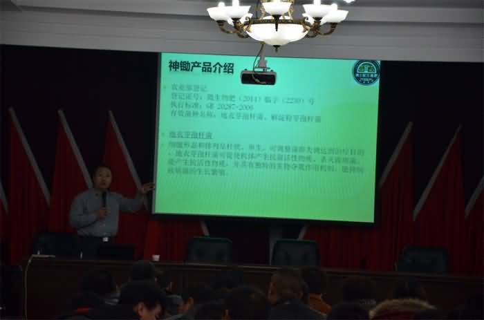 圖1:2014年12.14日公司與沙灣縣農業(yè)技術推廣中心聯(lián)合科技之冬講座,總農藝師劉軍和沙灣縣農機推廣中心總農藝師杜友萍組織合作社技術員、種植大戶技術員總結2014年的工作,計劃2015年的工作流程,講解新技術新產品的應用