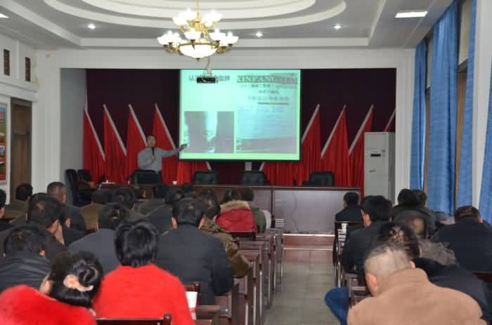 圖2:在新疆塔城地區(qū)沙灣縣政府會議室,大家認真聽老師的講解,學習新技術,新產品的使用方法,達到節(jié)本增效的目的