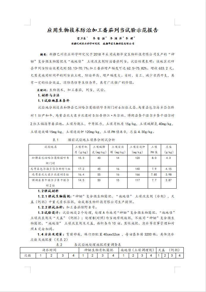 應(yīng)用生物技術(shù)防治加工番茄列當(dāng)試驗示范報告