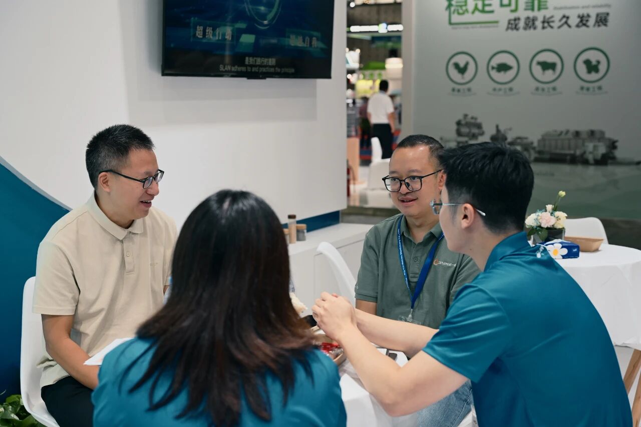展臺洽談區(qū),技術(shù)團(tuán)隊在與