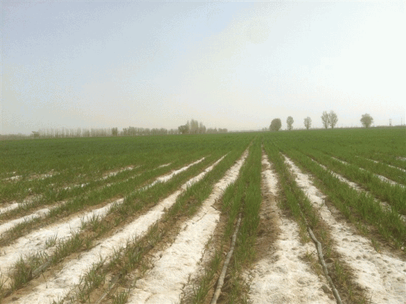 2012年,“施地佳”鹽堿土壤改良劑在新疆兵團103團重度鹽堿地第二年成功種植冬小麥圖 2014/2/16 華宏生物 2012年,“施地佳”鹽堿土壤改良劑 在新疆兵團103團重度鹽堿地第二年成功種植冬小麥圖 圖片編輯:陽光