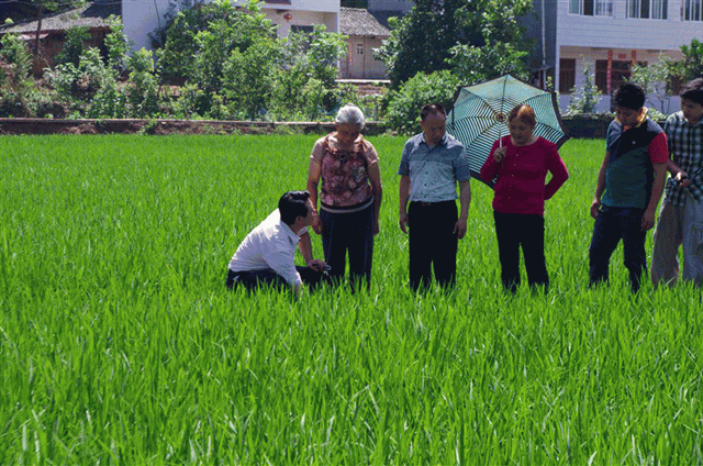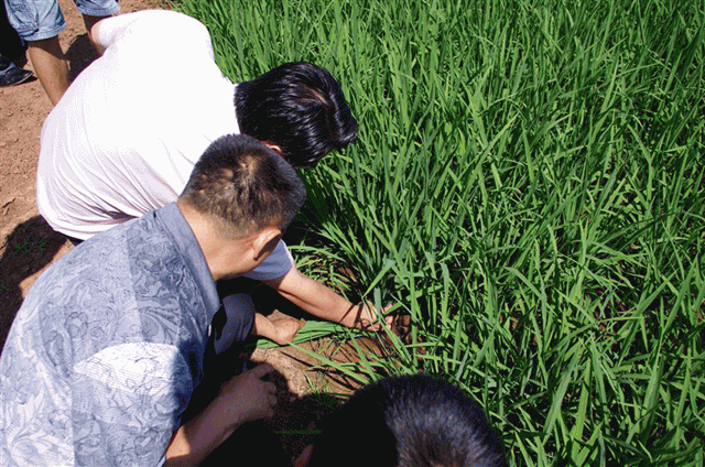 圖3:公司員工親自到稻田察看超級稻分蘗情況