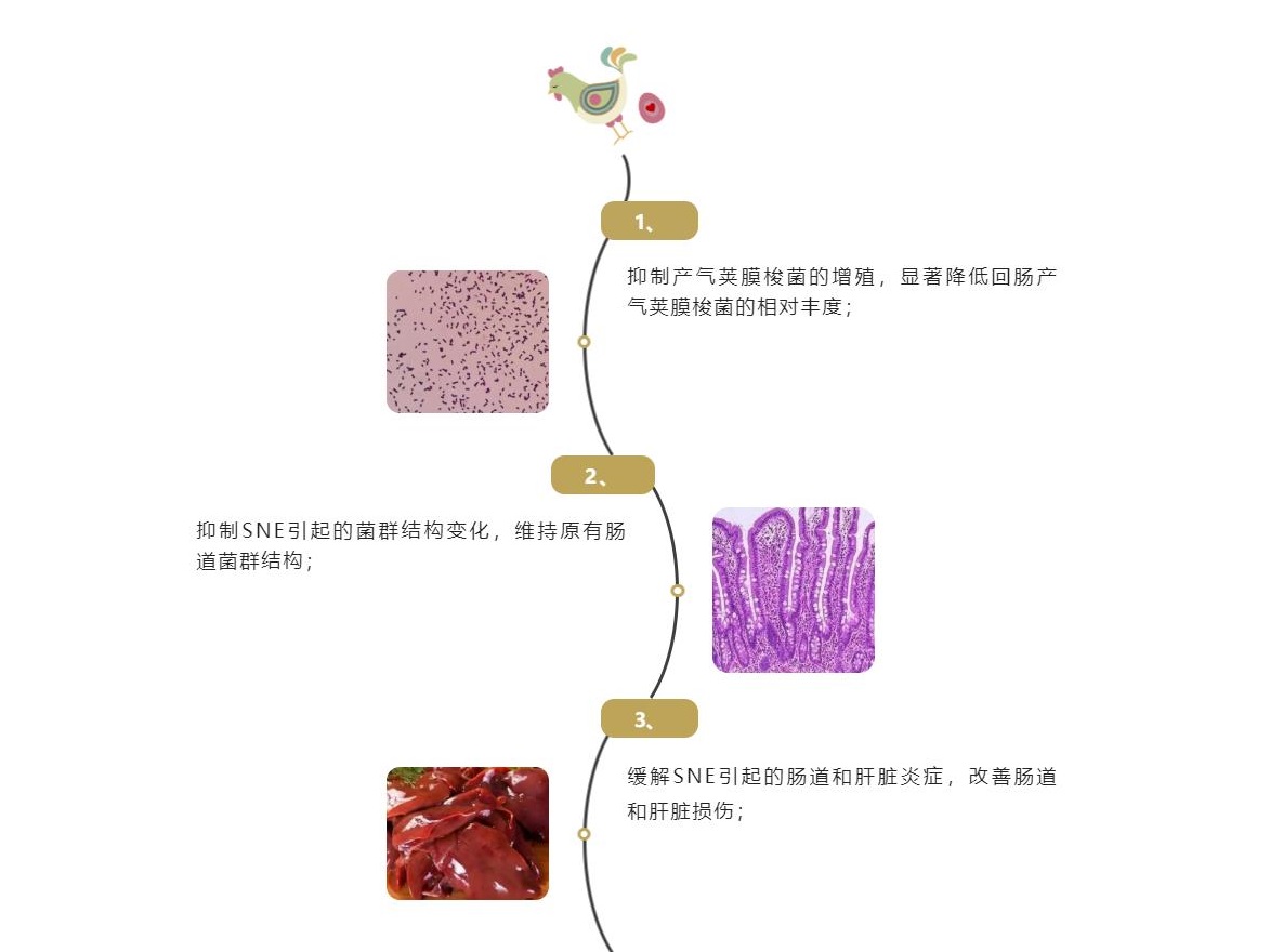 產(chǎn)氣莢膜梭菌會(huì)引起肉雞腸道和肝臟炎癥,破壞腸道屏障,導(dǎo)致腸道失調(diào),從而降低生產(chǎn)效率。