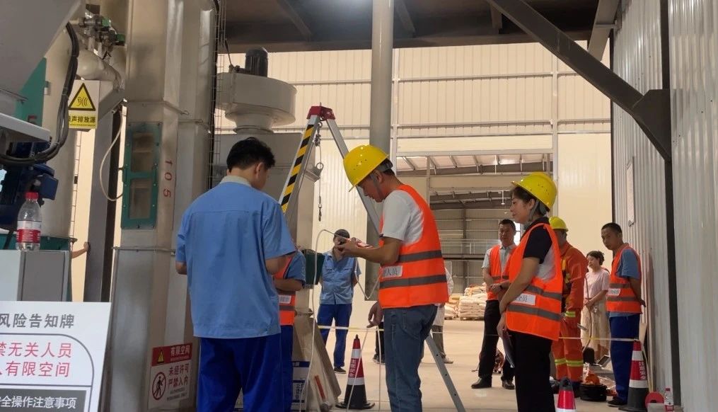 本次演練的有限空間位于混合型飼料添加劑生產車間的地下,現(xiàn)場作業(yè)組、檢測組、救援組、監(jiān)護組等參演人員,攜各類作業(yè)設備裝備按規(guī)范流程開展準備工作。
